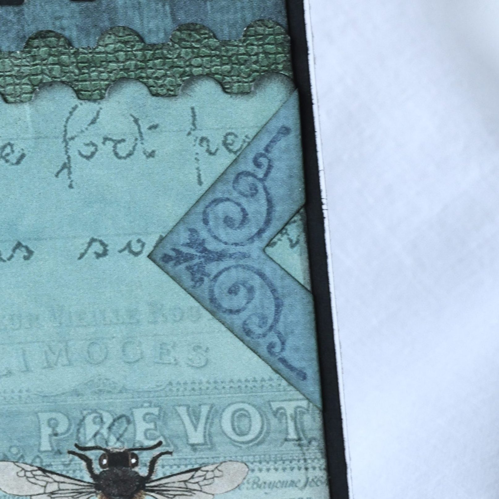 I really wanted to create a card with the sweet birds and beautiful birdcage, but I didn’t want my birds to be trapped inside. So, with just two short horizontal cuts and two tiny vertical cuts with an X-Acto Craft Knife, as pictured below, I created a moveable door for the birds to escape.