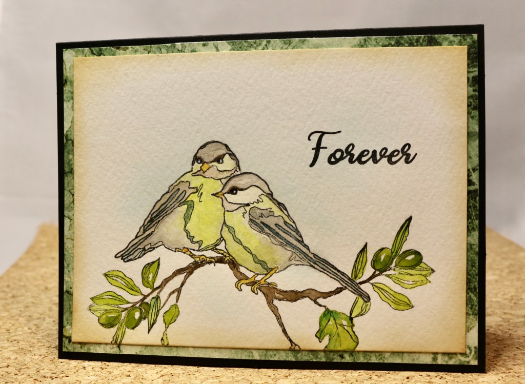 Hello and welcome! I love playing with stamps and seeing what I can come up with by combining them. Both of these cards were made using single bird stamps and the masking* technique to unite them into a scene.