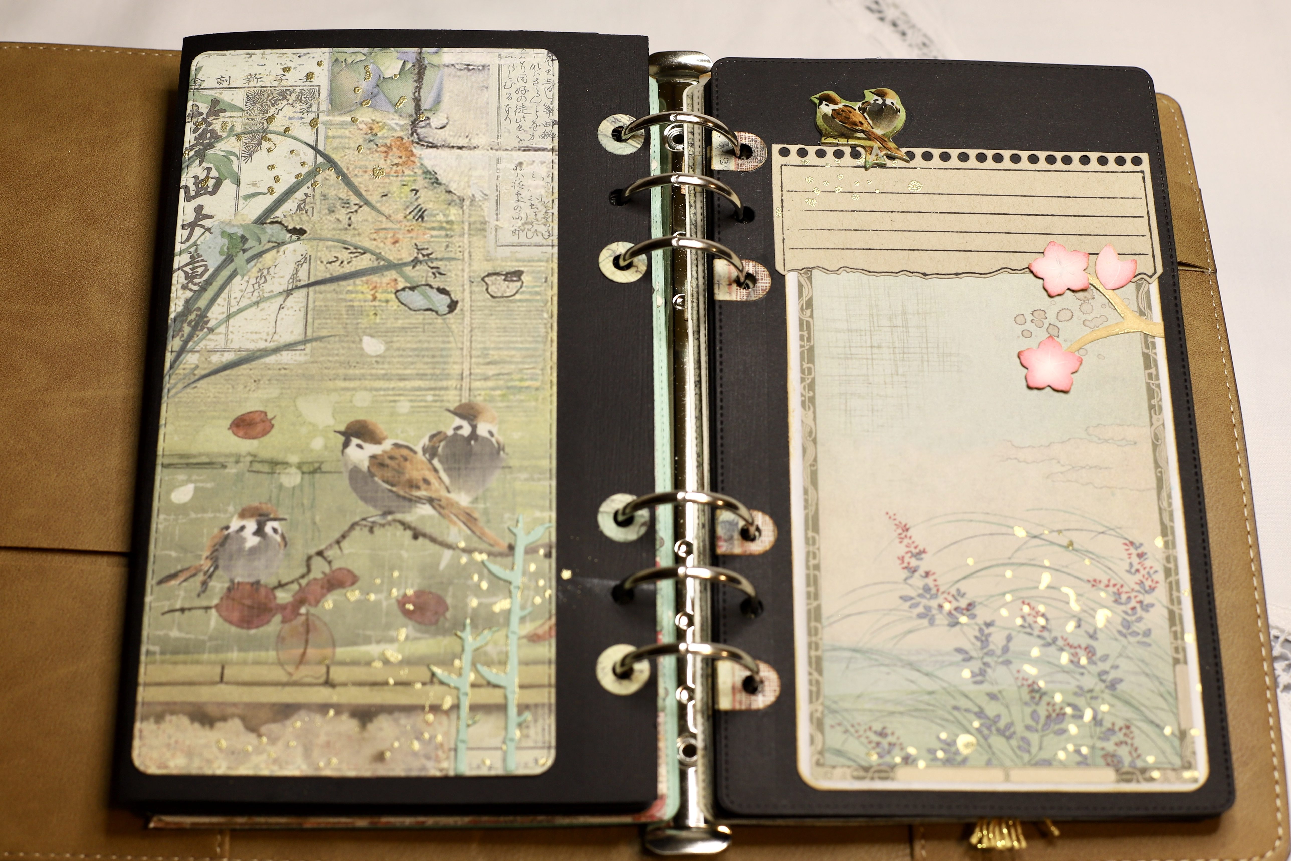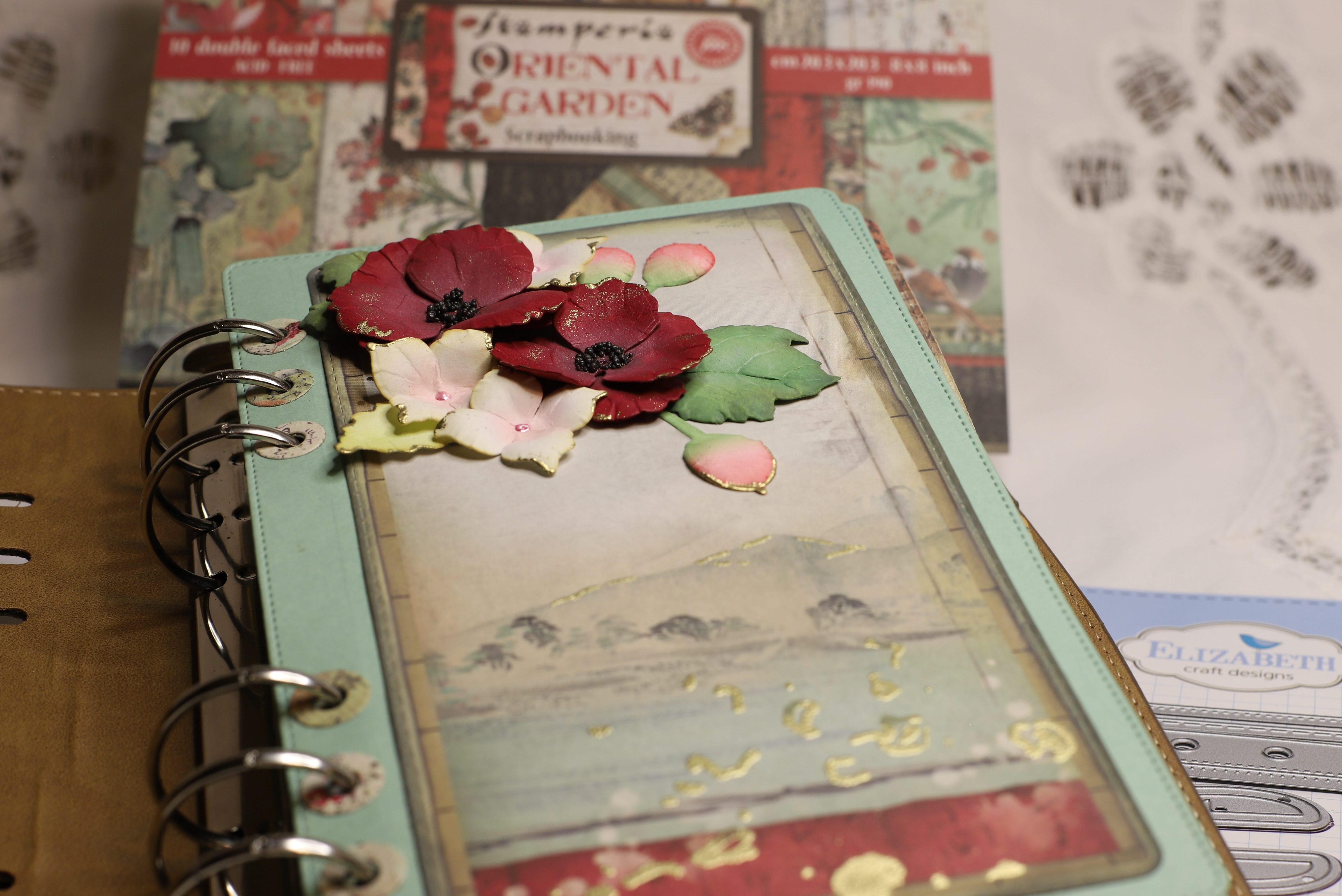 Hi and welcome! Di here. Stamperia’s Oriental Garden paper is so gorgeous that I “had” to have it. I don’t have a specific purpose for this journal, so I left space for photos or journaling, it could even become a planner. This may be gifted to someone – if I can part with it.